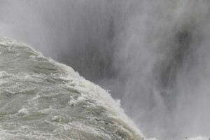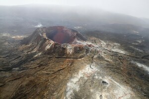 En soirée lors de notre survol en hélicoptère le temps est gris et pluvieux et la nuit approche. Images un peu ternes mais intéressantes tout de même. Avant de rentrer à Reykjavik le pilote fait un détour pour survoler le cratère du Fagrafalsfjall, actif l’année dernière.