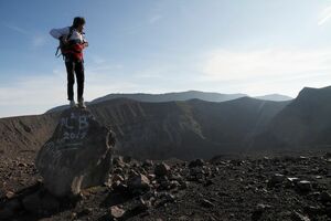 Aujourd’hui, 23 septembre 2009, je suis bien loin de mes ascensions habituelles sur des volcans actifs. Seule une fumée peu imposante monte de temps à autre d’un des cratères principaux. J’ai beau faire le tour de la caldeira, il n’y a aucun autre signe d’activité. Ce n’est pas grave, car en tant que Minangkabau d’adoption je me devais de faire l’ascension! Je remarque la présence de deux petits lacs d’eau ou plutôt mares, dont je ne sais s’ils sont permanents ou non.
