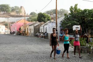 Après une nuit en vol et une escale à Lisbonne, nous voici à Praia, capitale du Cap-Vert, sur l’île de Santiago. Le volcan Fogo est à environ 90 km à l’ouest d’ici sur l’île du même nom. L’aéroport y étant fermé c’est en ferry que nous rejoindrons la petite ville de San Felipe sur l’île de Fogo.