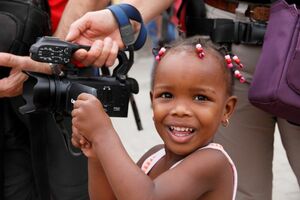 Nos caméras et appareils photos semblent attirer cette jeune enfant de Praia!