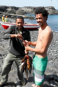 De Ponta Da Salina partent également des barques de pêcheurs. Notre déjeuner sera donc composé de succulents poissons. Nos 2 guides Lucas et José nous montrent les prises!