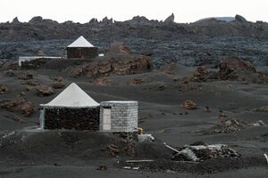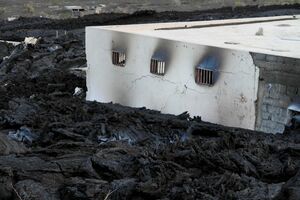 Un premier aperçu des dégâts dus aux coulées. Ces abris typiques n’ont qu’un répit avant d’être emportés par la coulée visible en arrière-plan.