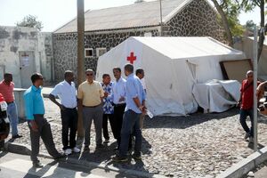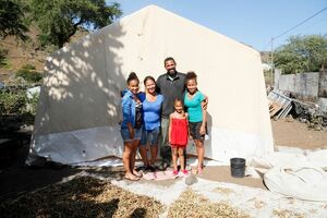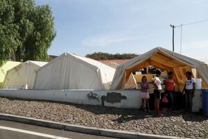 L’éruption en cours à déjà ensevelie 3 villages de la caldeira du volcan. Dans le village de Achada Furna des tentes ont été montées pour héberger les réfugiés qui n’auraient pas pu être relogés dans leur famille.