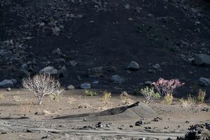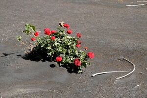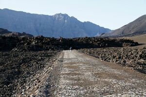 Le lendemain, 19 décembre, nous nous arrêtons un peu avant l’entrée de la caldeira pour regarder l’ancienne coulée de 1951 qui déborda de la caldeira. Nous immortalisons aussi dans la caldeira quelques massifs de fleurs qui n’ont pas été détruits par l’activité actuelle du volcan.