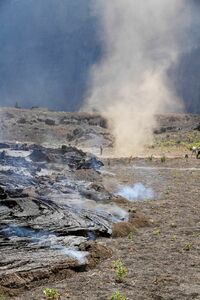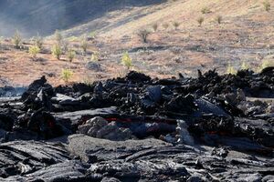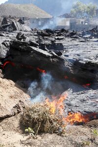 Après cet intermède botanique, le volcan reprend ses droits et dans l’après-midi nous longeons une coulée pour observer son avance et ses ravages. Des habitants sont venus récupérer quelques dernières affaires. Un paysan essaie de sauver sa récolte avant qu’elle ne soit détruite par la lave.