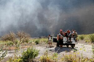 Nos guides eux-mêmes ont perdu leurs maisons construites dans la caldeira. Ici José et sa famille.