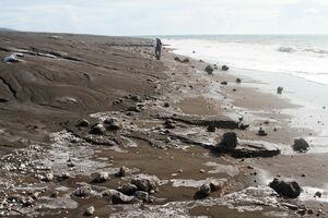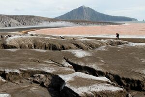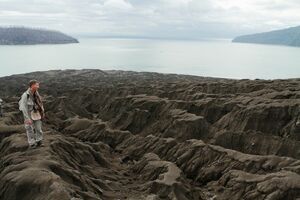 Samedi 19 janvier. Avant de quitter la zone nous tournons autour du Krakatau. Côté est – là où s’étendaient une plage et une forêt – l’île s’est agrandie sur la mer de plusieurs dizaines de mètres et une imposante couche de cendre rend le paysage méconnaissable.