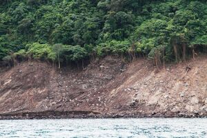 A Rakata la fameuse plage a été engloutie et tout le long de sa côte nord le tsunami a arraché la végétation sur plusieurs mètres de haut. Krakatau Kecil n’est plus que désolation, toute trace de vie a disparu.