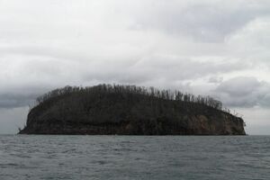 Un regard rapide dans notre dos. Tout en bas un petit bateau blanc vient d’accoster sur l’île. Nous ne sommes plus seuls, mais les passagers ne montent pas jusqu’au sommet.