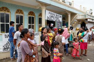 L’effondrement du cône du Krakatau a provoqué un tsunami meurtrier sur les côtes sud de Sumatra et ouest de Java. A Labuhan, les dégâts sont importants. Un centre de secours et de collecte de dons a été ouvert dans une mosquée.