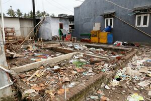 On nous emmène maintenant voir de nos propres yeux ce qu’il reste des maisons situées en bord de mer. Les murs de briques n’ont pas résisté aux assauts des trois vagues successives. Les survivants nous racontent comment ils ont vu mourir les membres de leur famille et leurs voisins.