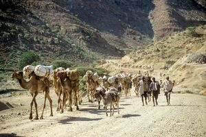 Nous aussi nous partons vers la montagne – en 4×4 cette fois-ci – croisant les caravanes qui redescendent de Mekele lourdement chargées.