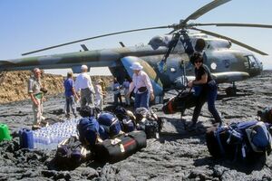 Le 24 novembre en milieu de journée nous débarquons de l’hélicoptère MI-8 de l’armée éthiopienne après un vol de 50 minutes, serrés entre l’énorme réservoir de l’appareil, les sacs et les packs d’eau nécessaires au séjour.