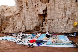 En milieu de journée, la fournaise de Dallol mérite sa réputation: plus de 40°C, avec un vent qui nous apporte heureusement un peu d’air. Rien de tel tout de même qu’une sieste après le déjeuner..