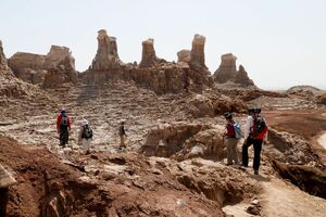 Suite de la journée à Dallol avec une randonnée dans les canyons de sel, lieu envoutant et mystérieux. Notre guide afar nous narre les phénomènes étranges et inexpliqués qui s’y sont produit.