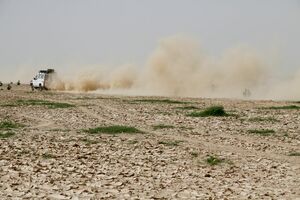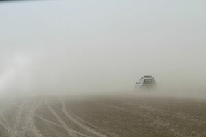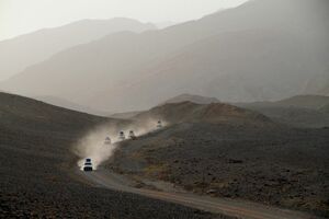 25 janvier. S’il reste encore une partie du voyage où la piste mérite son nom, c’est le trajet Ahmed Ela – Kursewad au pied de l’Erta Ale. Soulevant des nuages de poussières, les 4×4 prennent la direction du sud pour un peu moins de 80 km. Ici pas de camion, ni réseau de téléphone portable! Le sol est craquelé et asséché sous la fournaise du soleil.