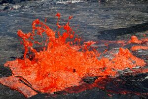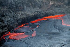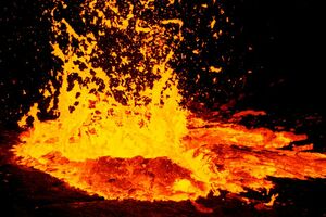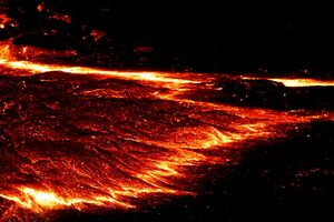 Arrivés au bord du pit-cratère vers 0h le 26 janvier nous contemplons enfin le lac de lave. Il s’agite fréquemment, sa surface se boursoufle, se fissure et des jets de lave apparaissent. C’est l’extase! Nos matelas posés à même le sol à quelques mètres du pit cratère, nous nous donnons tout de même quelques heures de repos avant d’être de retour au poste d’observation au petit matin.