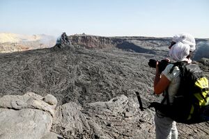 C’est mon troisième séjour sur les volcans éthiopiens et – vous allez le voir – cela reste toujours aussi intéressant et vaut largement le déplacement! Un lac de lave bien agité et dont la surface est à moins d’une dizaine de mètres du bord du pit-cratère nous a incité à organiser ce voyage supplémentaire.