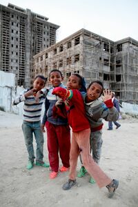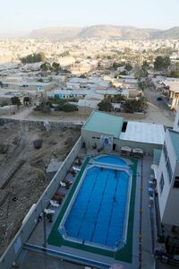 Notre hôtel dispose d’une piscine (nager à une altitude de 2300 mètres est une expérience à faire, on se fatigue vite). Aux alentours de notre hôtel, d’autres hôtels en construction et un quartier ‘ordinaire’ de la ville, les enfants nous y accueillent comme il se doit!