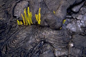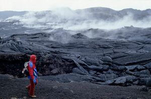 Une longue marche est nécessaire pour atteindre ce dernier. Une marche rendue difficile par les laves de type « Aa » – des champs de cailloux aux arêtes rugueuses – ou « Pahoehoe », des plaques plates ou bombées d’une grande fragilité. De plus, le sol chaud trahi la présence de coulées de lave souterraines.