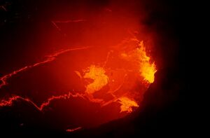 Après une dernière traversée de zones de fumerolles, l’arrivée au bord du cratère du Pu’u O’o révèle un spectacle fantastique: un des rares lacs de lave en fusion au monde. Là, d’un mouvement lent la croûte de lave noire se fissure, se plisse, des zébrures incandescentes apparaissent, tandis que sur les bords des jets de lave à plus de 1000 degrés jaillissent violemment.