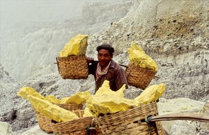 En Indonésie, des hommes collectent le soufre au coeur d’un volcan dans une atmosphère suffocante puis le transportent sur vingt kilomètres. Le danger est bien réel, nous en ferons l’expérience en ce mois de juillet 1993! Récit d’une incursion dans un âge que l’on croyait révolu.