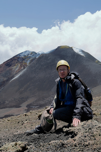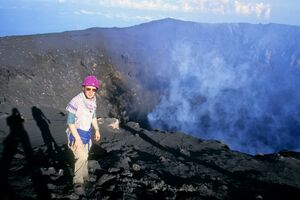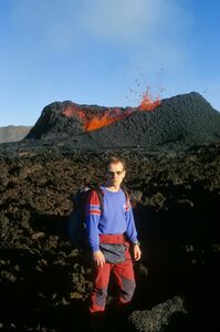 1999: La Réunion, devant un cratère en activité du Piton de la Fournaise