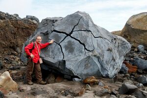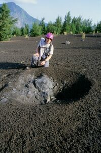 1997: Indonésie, au pied d’un impact de bombe volcanique sur les flancs de l’Anak Krakatau