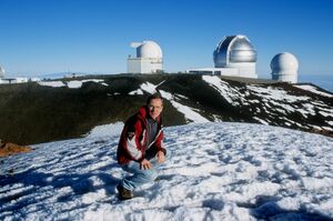 2002: Hawaii, devant les coupoles des observatoires astronomiques au sommet du Mauna Kea, Big Island