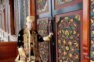 2012: Indonésie, en costume Minangkabau devant le palais de Pagaruyung, Sumatra