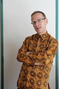 2010: portant une chemise typique Batik indonésienne en soie