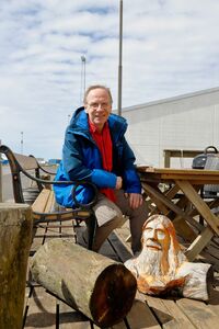 2021: Islande, assis à la terrasse du bar Bryggjan à Grindavik