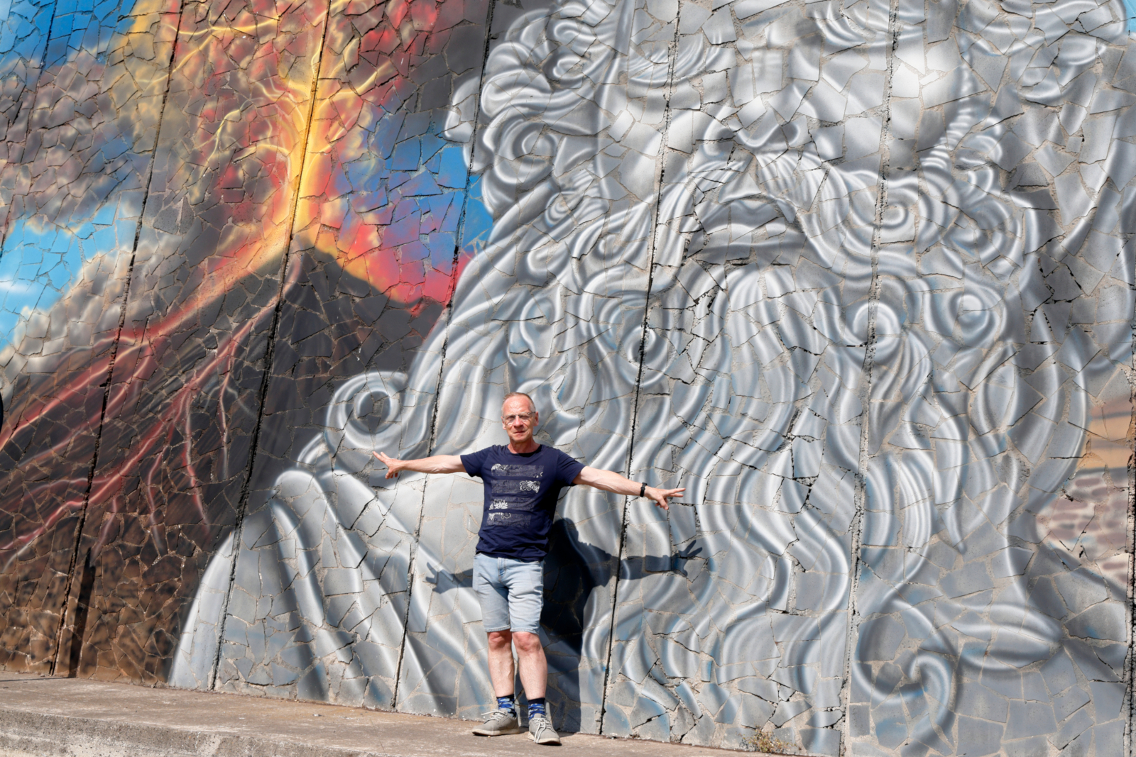 2025: Sicile, devant une fresque à Bronte
